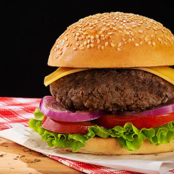 Rica hamburguesa de vacuno de 100 gramos.